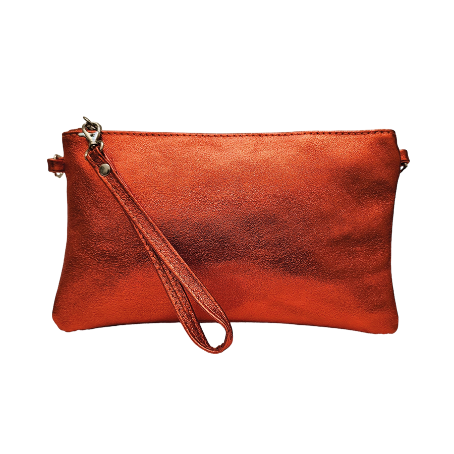 La cartera de mano de piel metalizada es el modelo Rita de @filipabags y está rebajada de 26€ a 22,10€.