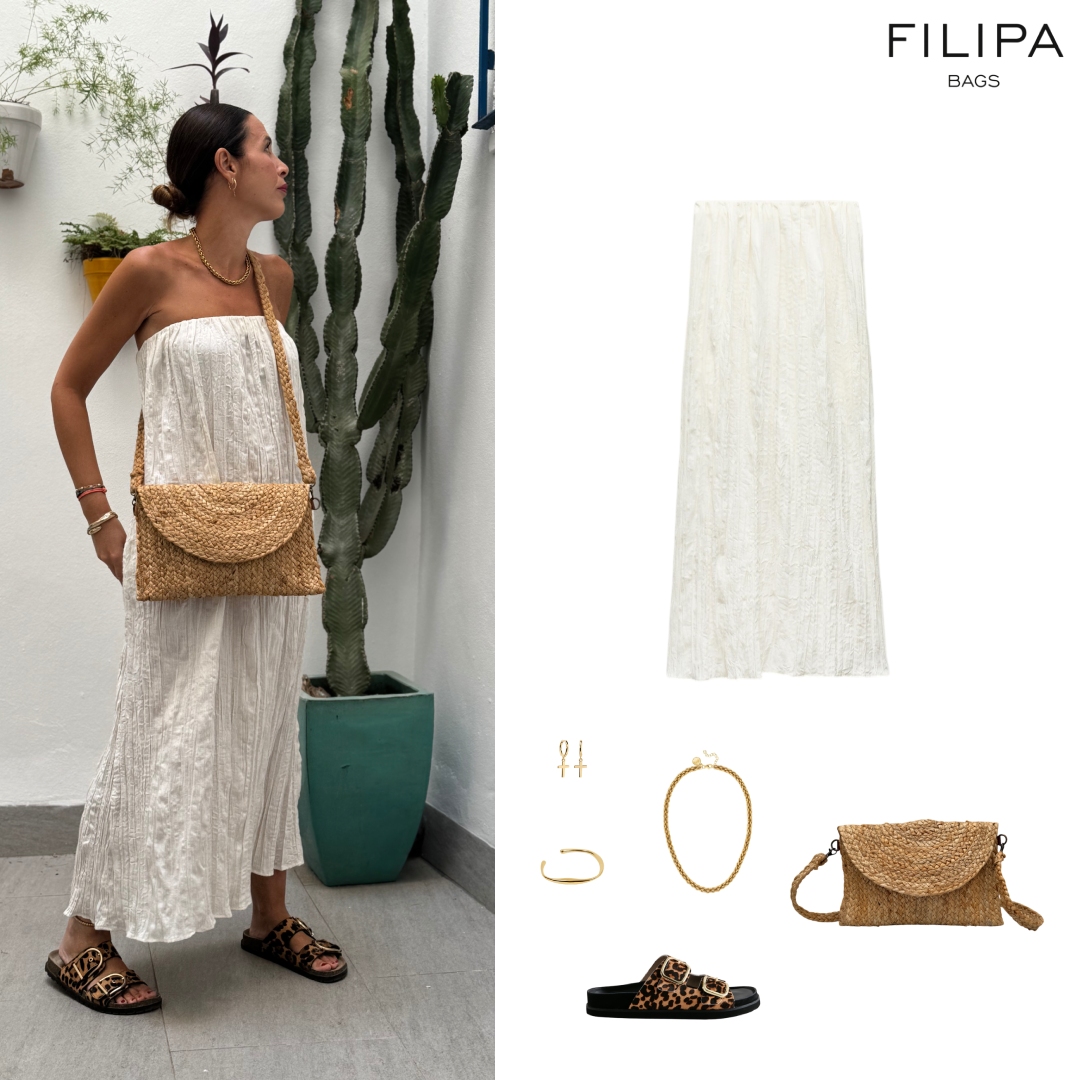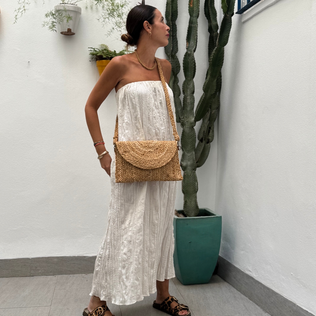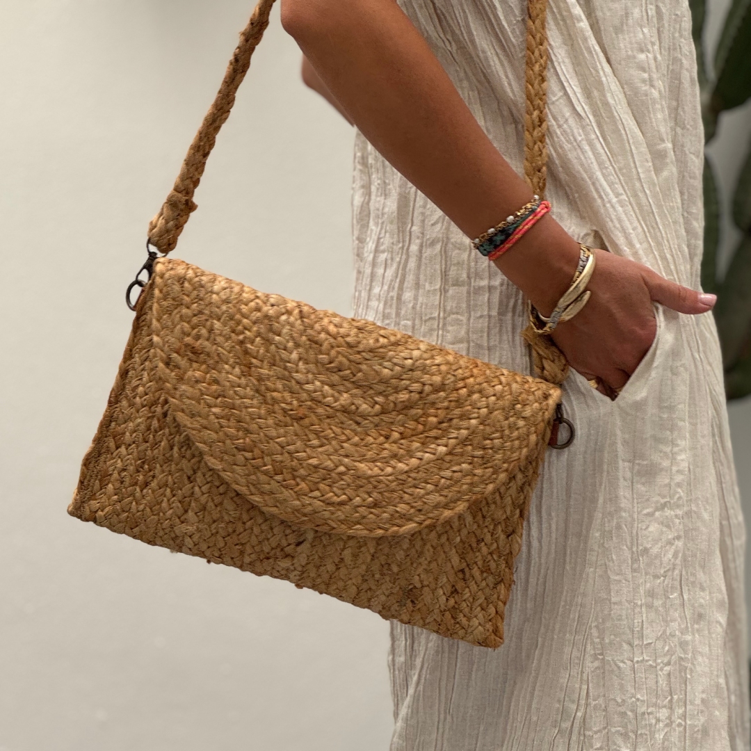 CHANTAL está confeccionado en 100% yute de color natural por lo que combina con cualquier color y estilo. Su tamaño y diseño hacen que sea un todoterreno perfecto para llevarlo de la mañana a la noche sin necesidad de cambiar de bolso para cada ocasión. Su asa permite llevarlo cruzado a modo de bandolera o al hombro, tiene cierre de cremallera y de imán, el interior forrado y cuenta con dos bolsillos para tener a mano lo imprescindible, aunque su tamaño mediano hacen que sea comodísimo. Chantal es un bolso cómodo, estiloso y tan ponible… que no te vas a querer separar de él.
